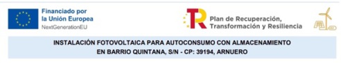 Se ha realizado un proyecto de instalación fotovoltaica (10.80 kW), para autoconsumo con almacenamiento (17,90 kWh), acogido al programa de incentivos ligados al autoconsumo y almacenamiento, con fuentes de energía renovable, así como a la implantación de sistemas térmicos renovables en el sector residencial en el marco del Plan de Recuperación, Transformación y Resiliencia, financiado por la Unión Europea – NextGenerationEU. INVERSION TOTAL: 18.108,20 Euros. Importe ayuda 9.468,68 Euros.